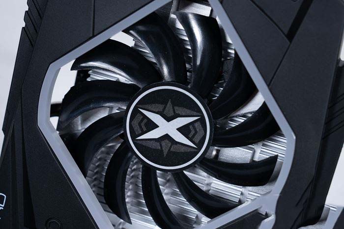 兩個(gè)風(fēng)扇直徑經(jīng)測量均為80mm,GTX 1650核心發(fā)熱量并不大,兩個(gè)80mm風(fēng)扇足夠壓制住