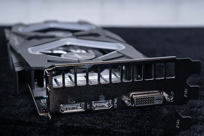 接口側(cè)面可以看到有DisplayPort、HDMI、DVI-D各一個(gè),畢竟GTX 1650核心算是入門級的,DVI-D接口的存在也照顧到了一部分使用老式顯示器的用戶,這個(gè)視頻接口組合比較貼合GTX 1650用戶的實(shí)際需求,并且足夠使用。這面也可以看到耕升GTX 1650炫光OC顯卡整體約為2槽的厚度,這也是現(xiàn)在顯卡的主流厚度了。