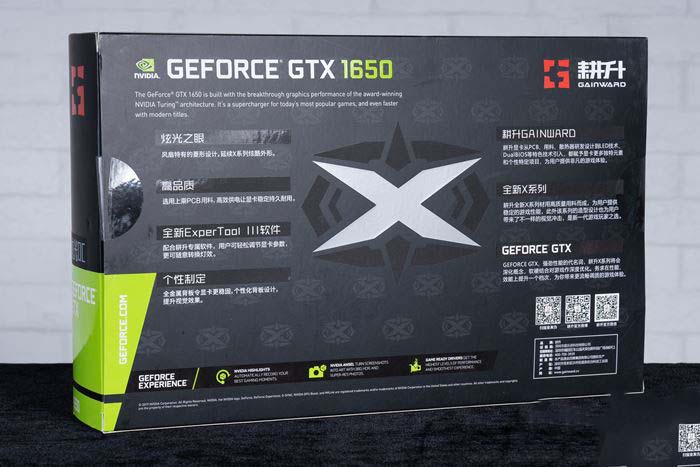 外包裝盒背面也和之前的一樣,簡單介紹了該卡的一些賣點(diǎn),不過耕升這里有些不小心,彩盒背面“全金屬背板令顯卡更穩(wěn)固”這部分內(nèi)容沒有刪去,之前的高端型號確實(shí)有背板,但是耕升GTX 1650炫光OC顯卡是沒有背板的。