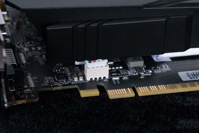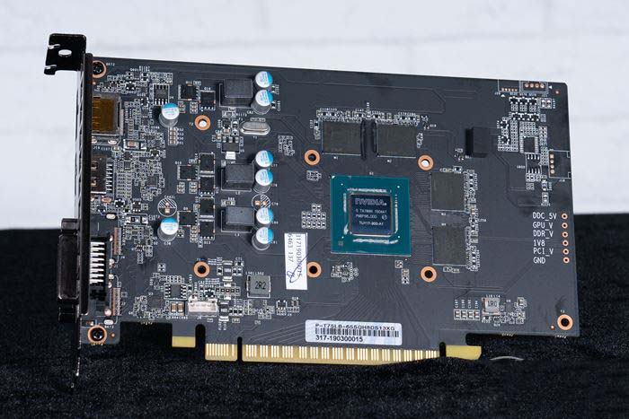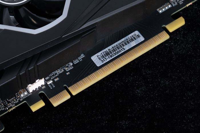 顯卡頂部依然有英偉達(dá)要求的GeForce GTX的標(biāo)志在上面,頂部這里沒有看到顯卡外接供電口,因?yàn)镚TX 1650核心TDP僅為75W,顯卡PCIE插槽足以滿足供電需求,并不需要外接供電。