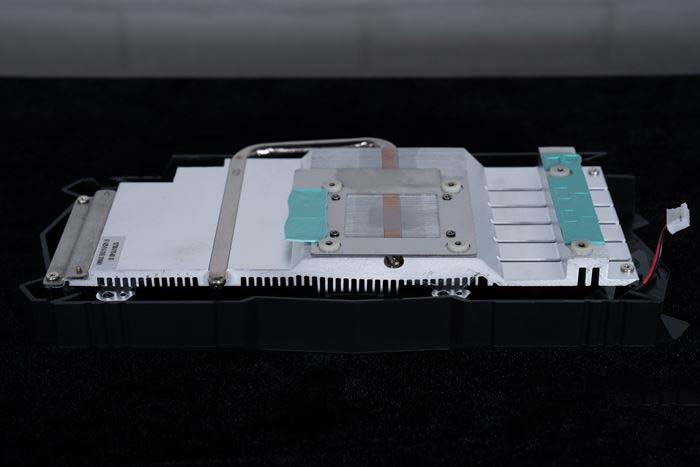 顯卡背面可以看到該卡沒有背板,散熱器很大,已經(jīng)超出PCB板