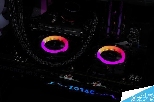 ▲索泰的RTX2060至尊PLUS也能RGB變幻,而且亮度較高,樣子也比較絢麗。