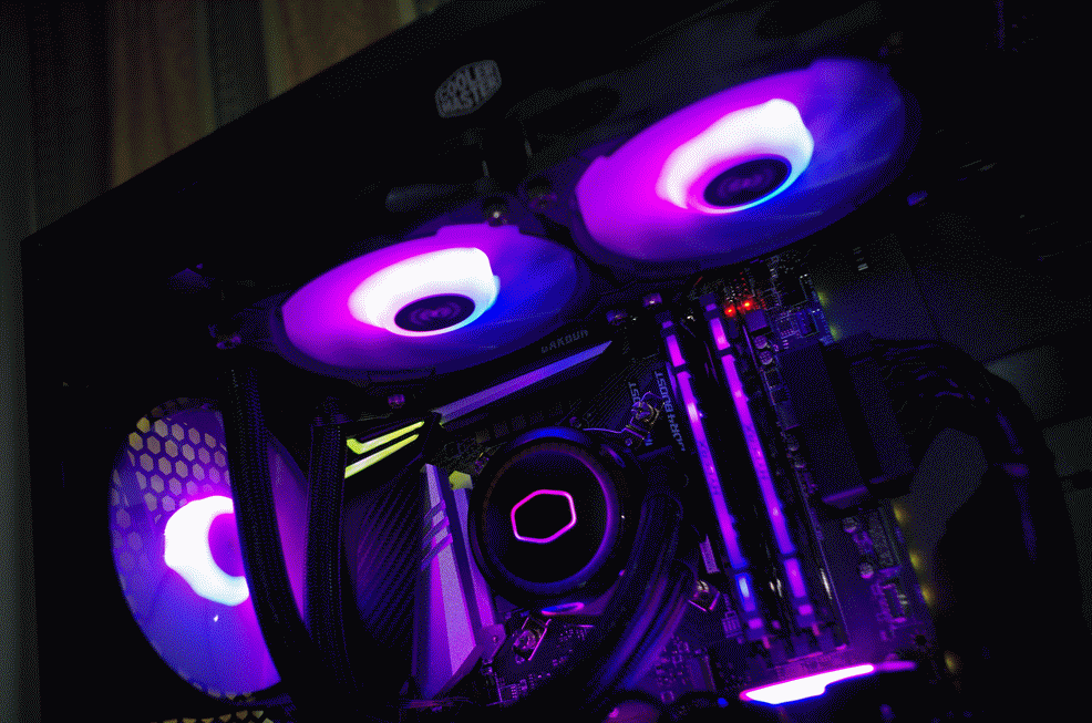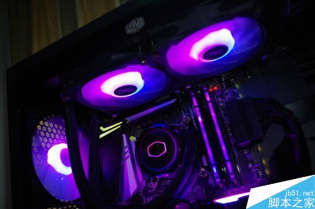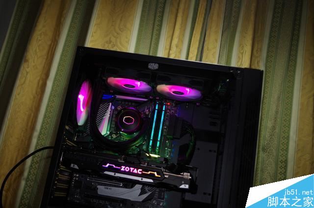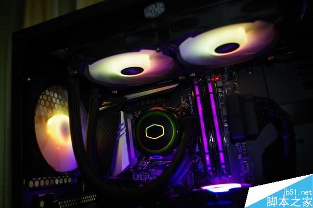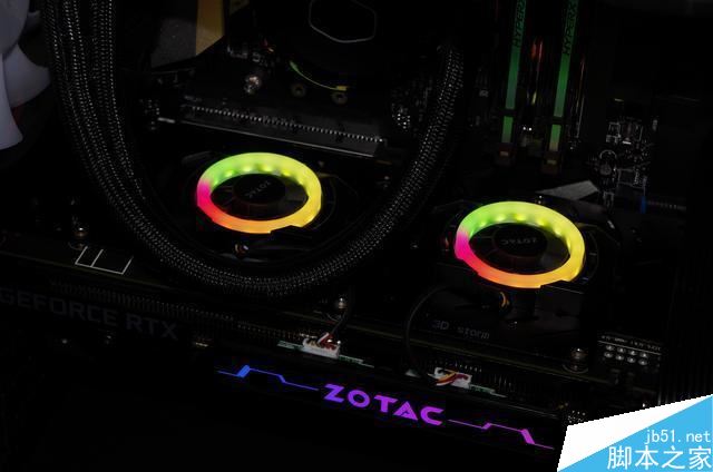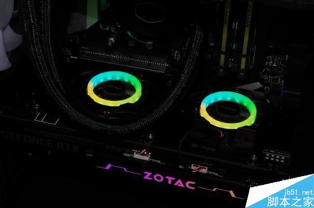 ▲水冷頭、內(nèi)存條、RGB風(fēng)扇、顯卡背部的RGB風(fēng)扇的燈光秀,看上去挺不錯的,不想RGB的時候可以關(guān)掉。