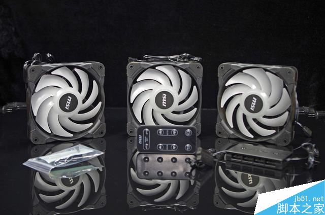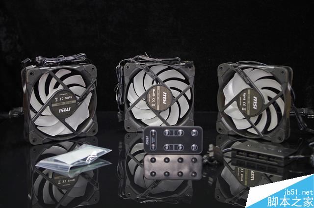 ▲有遙控器、RGB集線器,果然十分特別啊。標(biāo)準(zhǔn)的12025 RGB風(fēng)扇的樣子,邊角都有橡膠減震墊,不過?RGB信號線是5V的?有趣啊........