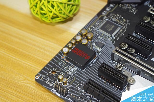 ▲板載聲卡區(qū)域,板載聲卡采用金屬罩子做屏蔽處理,旁邊有豐富的濾波電容,RGB玻纖環(huán)繞其間,不過這個位置的RGB一般會被遮擋吧?