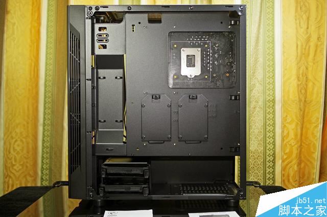 ▲機(jī)箱內(nèi)部有電源倉,HDD硬盤倉跟電源倉是一體的,前置可以放下最大360冷排,頂部也可以放下240/280冷排。