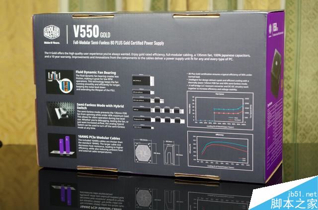 ▲背面就是產(chǎn)品的一些特點,可以看到這款電源是十分的安靜,有個風(fēng)扇靜止區(qū)域(在0~40%負(fù)載,能夠支持兩檔風(fēng)扇轉(zhuǎn)速,并且相互之間可以很方便切換。轉(zhuǎn)換效率也是非常的出色,符合80PLUS金牌標(biāo)準(zhǔn)。