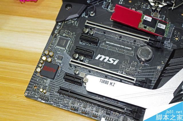 ▲我在靠近CPU的M.2 NVMe插槽上插入M.2 SSD。MPG Z390暗黑板提供2+1條PCI-E x16全尺寸插槽,以及4條PCI-E X1的擴(kuò)展卡插槽,2個M.2 NVMe接口。