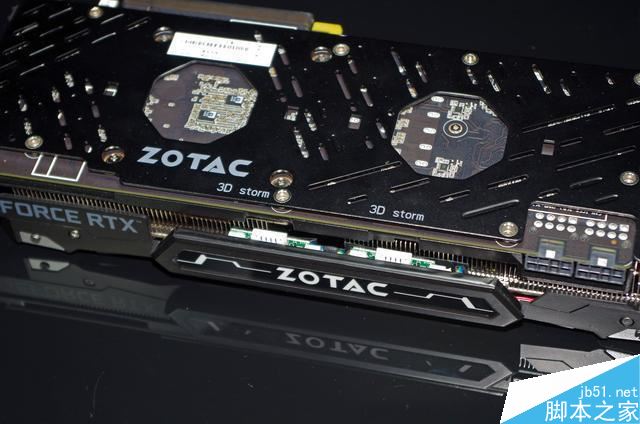 ▲2*PCI-e 8pin外接供電口,可以基本上不從主板上取電,索泰的LOGO下方有兩個后置風(fēng)扇的接口,風(fēng)扇與RGB運行從這里取電。