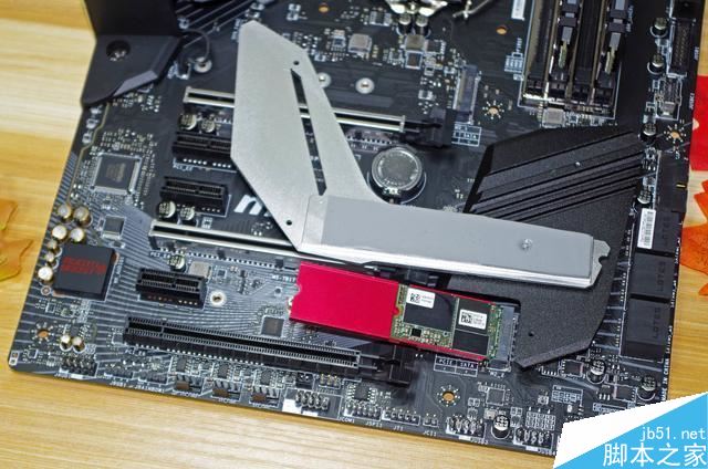 ▲拆開PCH上的螺絲,就可以卸下這個超超超長的M.2散熱片了,此時我們可以把M.2 NVMe SSD裝入這個位置,然后再擰緊螺絲,讓M.2散熱片來輔助散熱,這樣M.2 SSD發(fā)熱問題得到了徹底的解決啦。