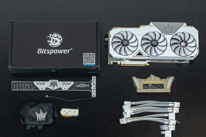 將顯卡那層放到一邊,才能看到影馳為RTX 2080 Ti HOF Plus準備的“秘密武器”,由Bitspower定制的全覆蓋水冷散熱器占據了下層近一半的空間。在水冷散熱器旁是一根顯卡支架。在顯卡支架旁是一雙手套,一個HOF顯卡造型的U盤,以及安裝螺絲。從這些看來,影馳可謂不惜代價,為玩家考慮得十分周到,所謂“紀念品意義”的產品也不虛此名。