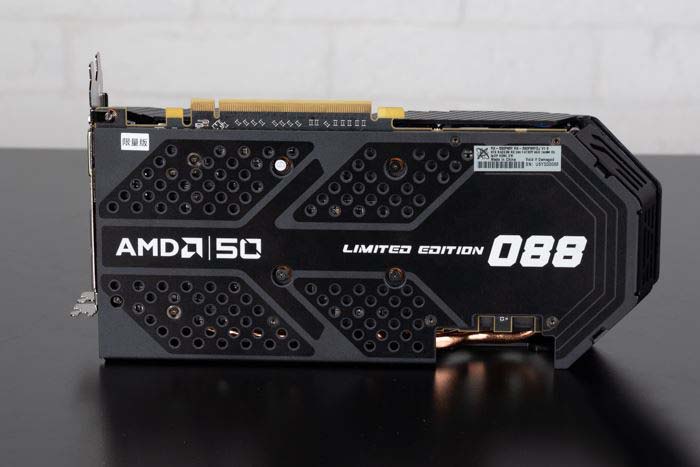背板當然少不了,XFX這塊背板質感很不錯,不容易留下刮痕,而且印著AMD 50、Limited Edition這些字眼,最右側的三位數字就是這卡的編號,我們那到的是第88塊,意頭不錯。