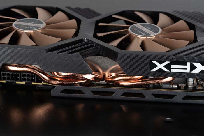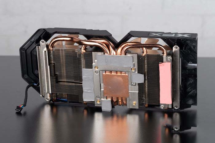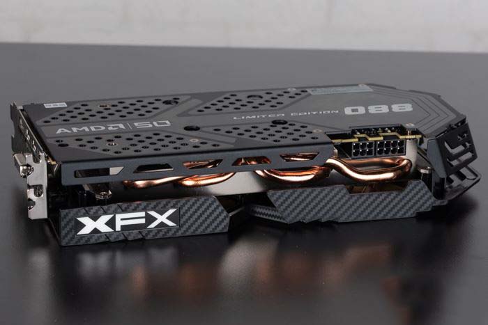 顯卡采用2.5槽的厚度設計,機箱兼容性應該說可以非常棒,其實訊景也可以考慮加大散熱規模,換取更好的溫度表現。頂部上有"XFX"LOGO,稍微可惜的是不支持發光,不過市售的AMD顯卡基本上都不帶燈,更別提RGB了。