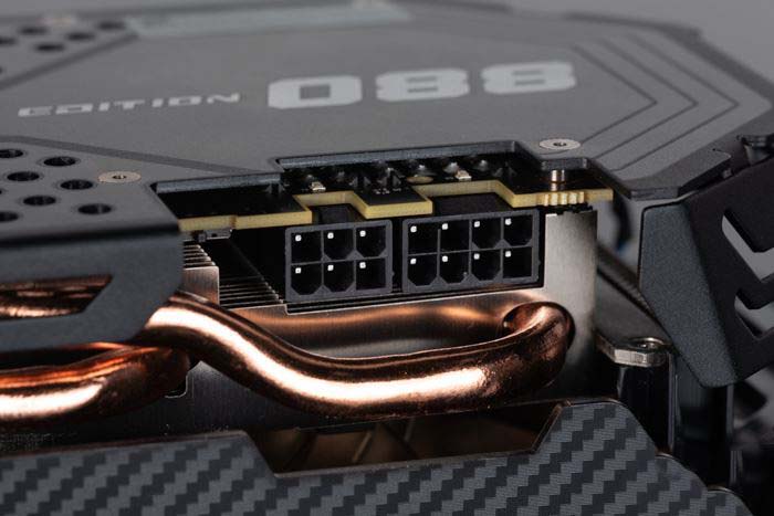 顯卡散熱器配備了四根熱管,它們的直徑是不同的,左側兩根是8mm的,右側兩個是6mm的
