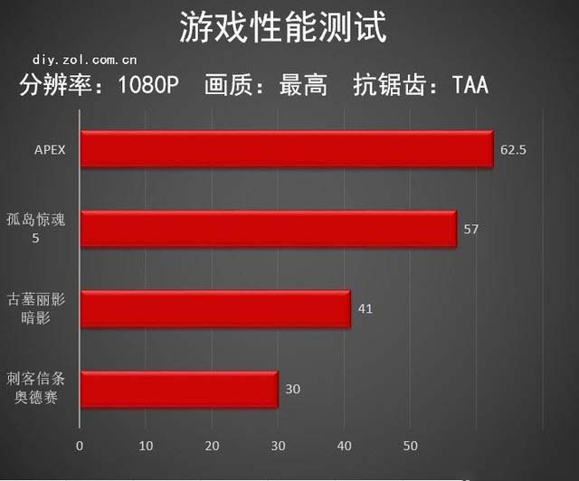 這塊卡在玩《英雄聯(lián)盟》等配置要求不高的游戲肯定沒問題,所以我測試了幾款3A游戲大作和《Apex》吃雞游戲,幀數(shù)如上。表現(xiàn)還不錯(cuò),如果降低一些畫質(zhì)基本都可以暢玩。《Apex》已經(jīng)能夠保持最高畫質(zhì)平均60+幀。