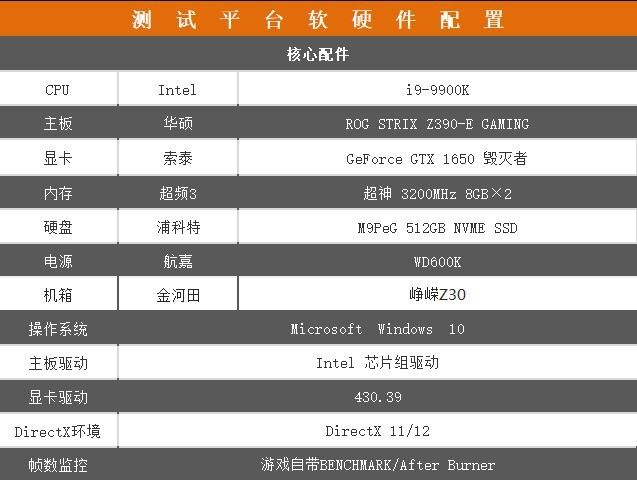 測試平臺(tái)方面,采用第九代Intel八核心十六線程的i9-9900K、華碩ROG STRIX Z390-E GAMING主板、浦科特M9PeG 512GB NVME SSD、超頻3 超神 3200MHz 8G*2、顯示器為戴爾U2718Q、電源為航嘉WD600K、機(jī)箱為金河田崢嶸Z30。詳情請(qǐng)看上圖。