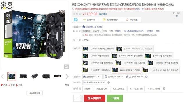 我們來說說價(jià)格,目前索泰GTX 1650毀滅者的京東售價(jià)是1199元,在整個(gè)GTX 1650芯片組里是很便宜的。