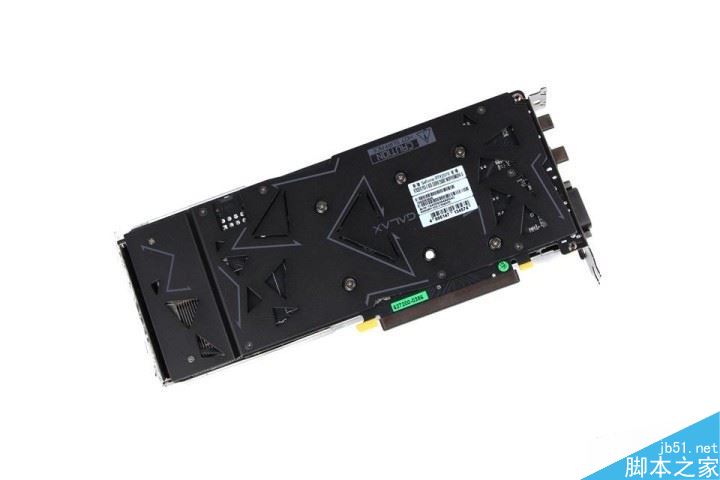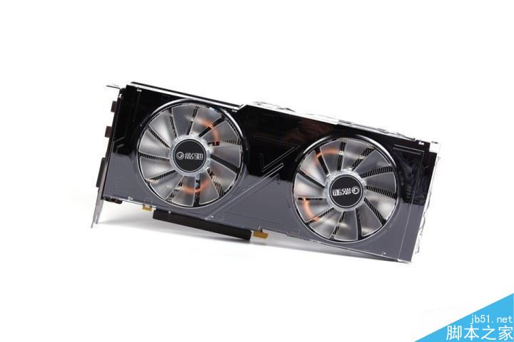 影馳新款的RTX2070在外觀和燈效上做了很大的改進,顯卡采用一體式的亞克力透明材質外殼,給人晶瑩剔透的感覺。雙9cm風扇是透光的磨砂材質,風扇內側有一圈RGB燈珠,通電后會有RGB燈效循環亮起。比較遺憾的是目前的燈光效果不支持跟主流的主板做燈光同步。后文部分會有燈光效果的展示。