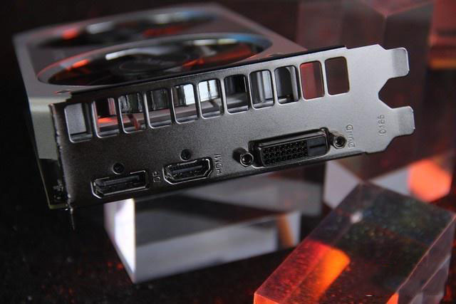 顯卡頂部首先映入眼簾的就是一根熱管,隱約能夠看到呈S型穿插在散熱鰭片中,從兩側帶走核心等部件產生的熱量。并且由于75W的功耗設計,PCIe就可完全滿足供電需求,所以并沒有額外配備電源接口。