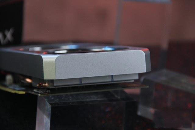 顯卡正面采用了2*80mm的雙風扇設計,周邊的亮銀色金屬包邊可謂是點睛之筆,中上方輔以GALAX的logo,顯得沉穩,內斂。