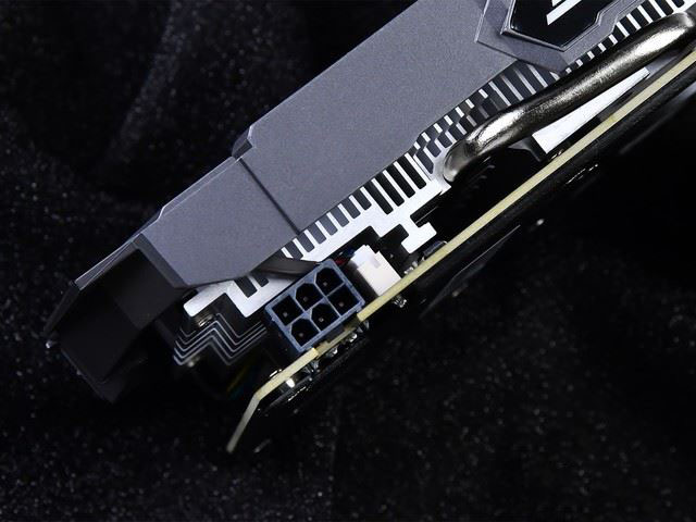 而在接口方面,iGame GTX 1650 ULTRA雖然標稱僅有75W的功耗,PCIe供電就可完全帶起來,但是因為我們手中的是OC版本,所以iGame還是為它配備了一個6pin的輔助電源接口,保證供電。