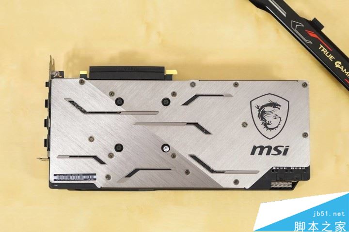 全金屬打造的支架,質感不錯,花紋裝飾與主卡風格一致,顯卡普遍加重,所以送支架保護很有必要,注意這塊支架不可調節高度,只能支持微星RTX2070或相同厚度的顯卡。