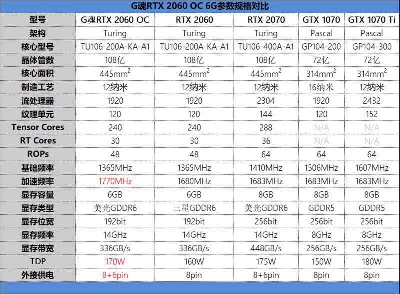 G魂 RTX 2060 OC-6G的參數(shù)如下: