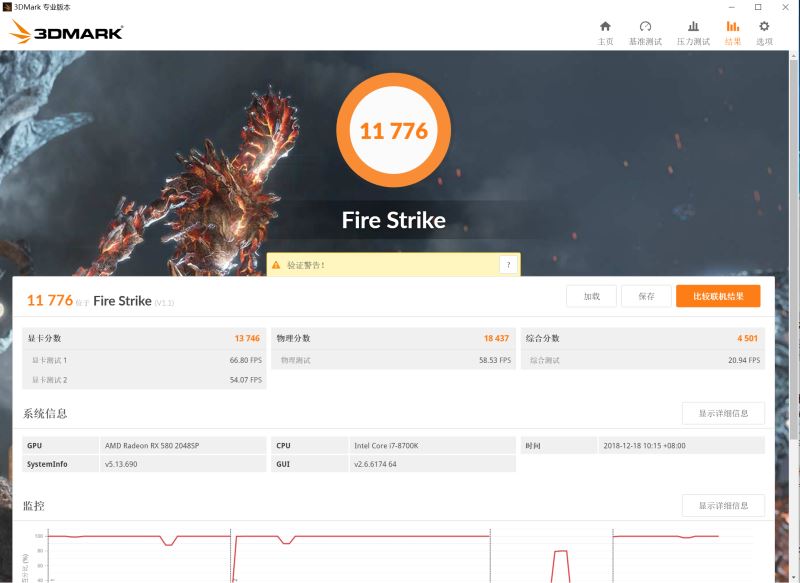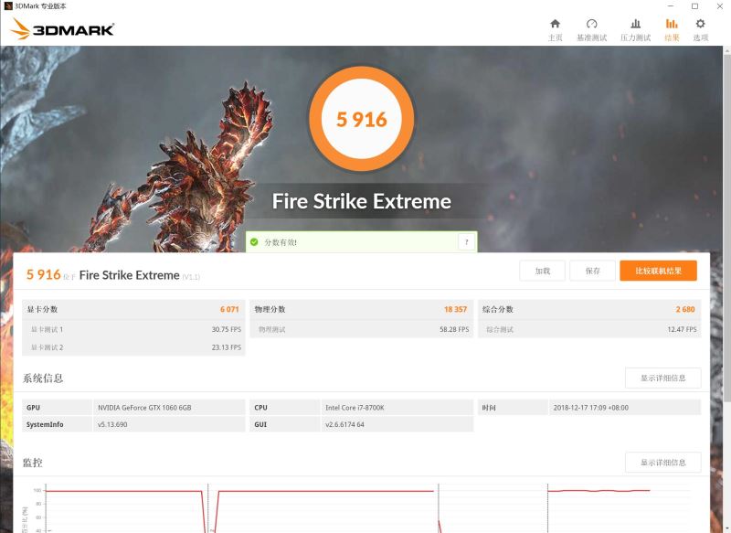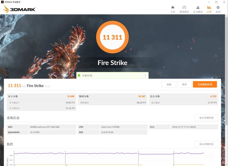 實測游戲之前咱們先用3D MARK跑個分,看看GTX 1066和RX580 2048SP的分數究竟幾何。