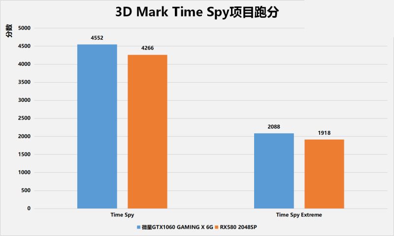 都8102年了,所以小編就先用DX12性能測試項目Time Spy跑一下,GTX 1066的得分是4552分。再要求苛刻一些使用基于4K分辨率下的DX12性能測試項目Time Spy Extreme,GTX 1066的得分是2088分。而在Time Spy項目中RX580 2048SP得到了4266分,相比GTX 1066的4552分就差了點火候。Time Spy Extreme項目上RX580 2048SP得到了1918分,而GTX 1066的得分是2088分,再次落敗。看來RX580 2048SP使用老的RX 570核心對于現在的DX12支持并不是十分給力。