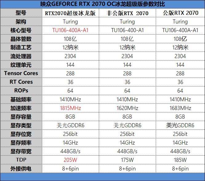 映眾GEFORCE RTX 2070 OC冰龍超級版參數如下: