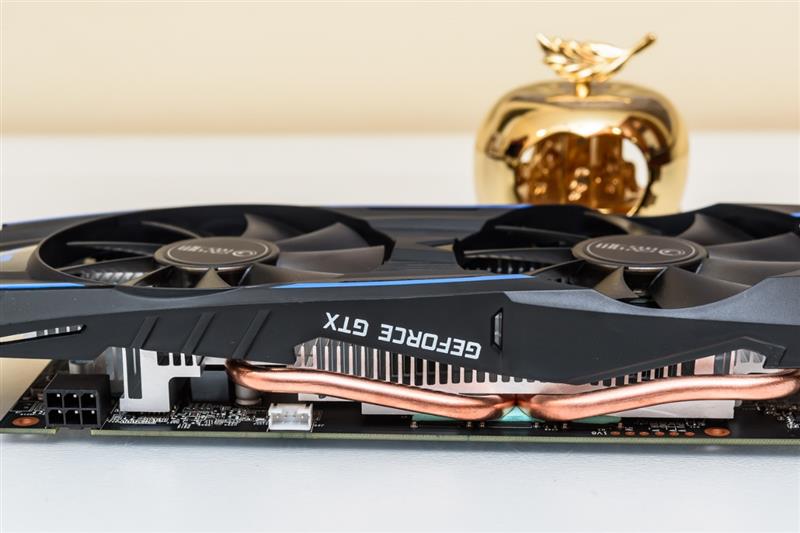顯卡頂部是不帶燈的。顯卡供電為單6PIN,對功耗要求尚可。