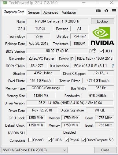 索泰RTX2080Ti-11GD6 玩家力量至尊PGF OC14參數(shù)如下: