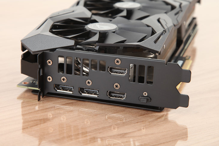 視頻輸出接口部分采用了華碩一向特立獨行的設計,雙HDMI 2.0和雙DP1.4接口以及一個USB-C接口組成了性能強大功能豐富的輸出接口陣列,全部可以實現4K分辨率超高清輸出和VR頭顯的支持。