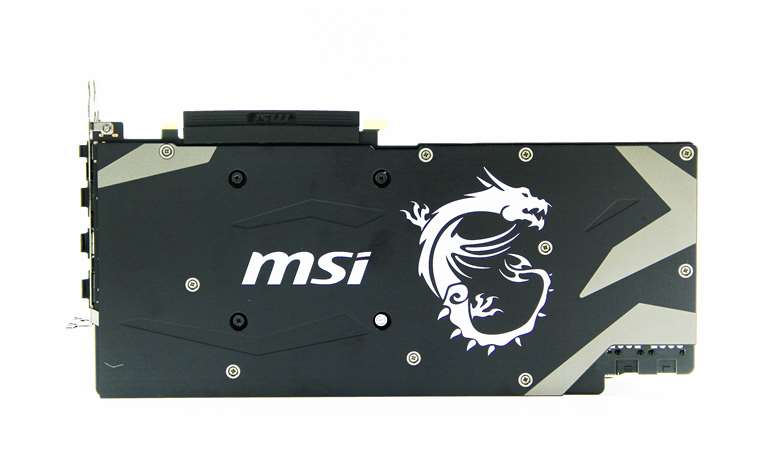金屬強化背板現在也已經是顯卡的標配了,微星RTX 2070 ARMOR 8G裝甲師的金屬背板將PCB板全部覆蓋住了,上面印有MSI和微星LOGO圖案。其實數一數背板上的螺絲數量就能知道這張RTX 2070 ARMOR 8G裝甲師的用料有多么下血本了。