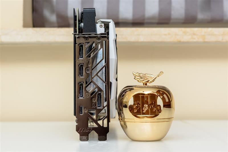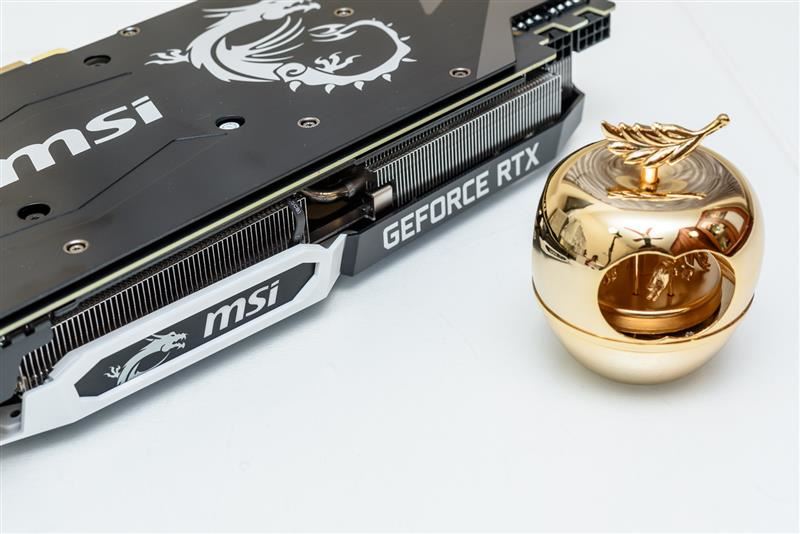 顯卡頂部有MSI的LOGO和RTX的標(biāo)識,其中MSI的LOGO是帶燈的,支持RGB變色。