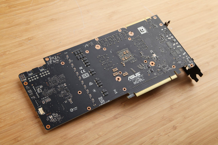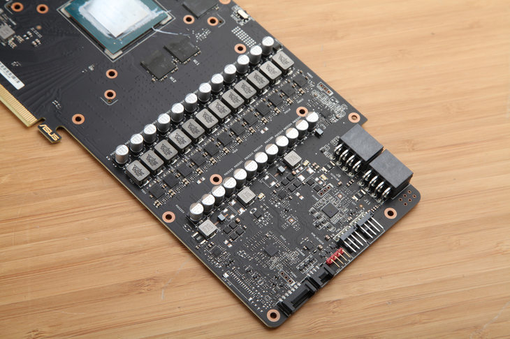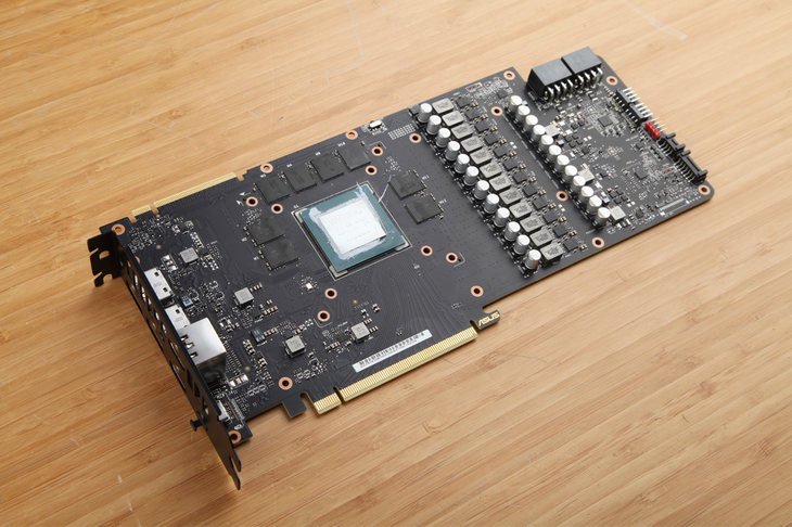 采用華碩獨家全自動制程工藝制造的PCB一如既往干凈漂亮,全自動化生產線大幅度降低了人工參與的不確定性,顯卡的良品率和可靠性都有明顯提升。