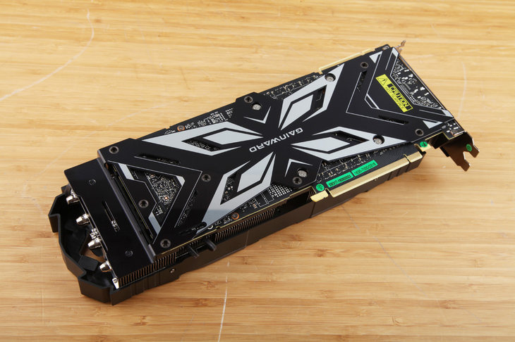 背部依舊是個性張揚的設計,鏤空的金屬背板起到了良好的加固作用,讓這款長度和重量都相當可觀的顯卡產品免受重力的傷害。
