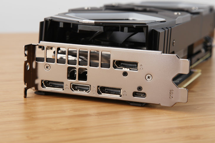 接口方面擁有兩枚DP1.4接口,兩枚HDMI接口,一枚Type-C接口,均支持4K 60Hz畫面輸出,同時Type-C接口可以實現一根線纜解決VR頭顯連接問題。