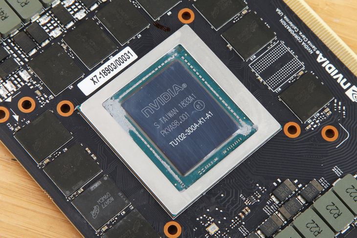硬件規格上,TU102核心采用12nm工藝制造,擁有4352個CUDA核心,最高睿頻達到1635MHz。顯存方面使用11GB的美光GDDR6顆粒,顯存位寬達到352Bit,等效頻率14000MHz。