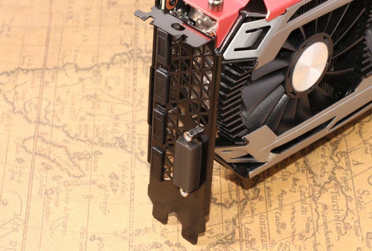 接口部分,映眾(Inno3D)GTX 1080冰龍超級版配備的是與FE版相同的1個 DVI-D、1個HDMI、3個DisplayPort的組合,支持7680x4320的超大分辨率。