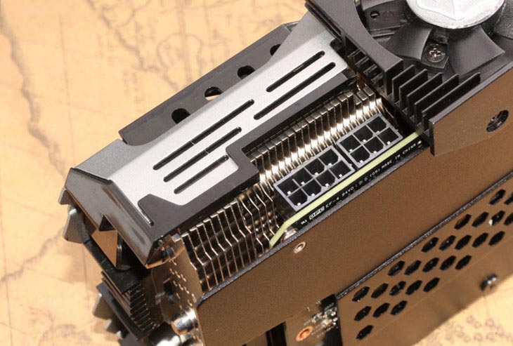 供電方面,顯卡采用的是在PG413公版方案上增加為6+1相供電(公版為5+1相),同時外接供電升級為8+6Pin的組合,全數字供電,這樣一來可以為顯卡超頻提供更多的潛力。