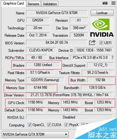 從上到下:流處理器數量、位寬、顯存容量、核心頻率、顯存頻率