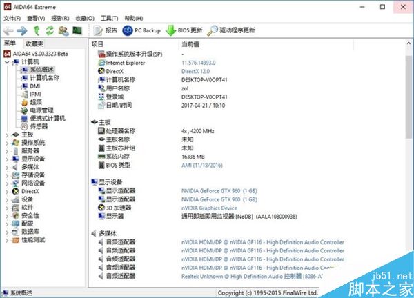 AIDA64的硬件檢測結果同樣是GTX 960,顯存1G。