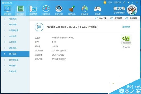 魯大師的硬件檢測結果也是GTX 960