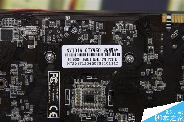 顯卡背面的貼紙上標注了英偉達GTX960高清版,參數為1G DDR5顯存,位寬192Bit,具備HDMI和DVI接口。