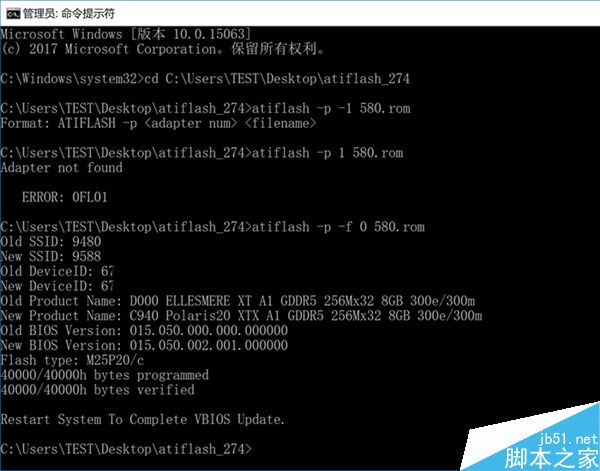 我們強制為RX 480刷寫入RX 580中提取的BIOS,詳細過程不表,直接看結果。刷寫完成后重啟電腦,顯卡能正確開機運行,無黑屏死機問題。