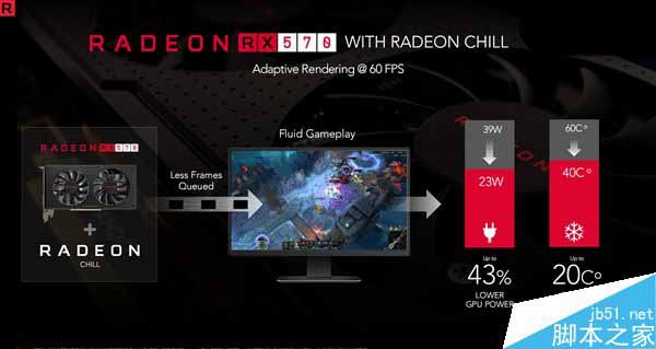 它可以在1080p分辨率、超高畫質(zhì)下搞定當(dāng)今流行游戲,并能借助Radeon Chill技術(shù),將顯卡功耗降低43%,溫度降低20℃。
