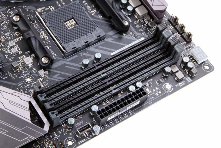 內存方面支持4 x DIMM, 容量可達 64GB, DDR4 3200(超頻)/2666/2400/2133 MHz Non-ECC, Un-buffered 內存,采用了雙通道內存架構。