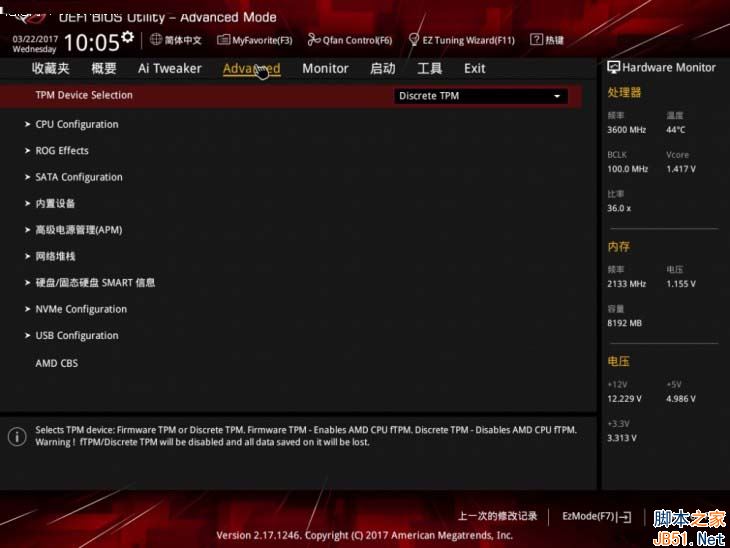 Advanced界面下包含CPU、PCH、USB、電源等高階管理選項。一些詳細的進階設置都在這里可以找到。