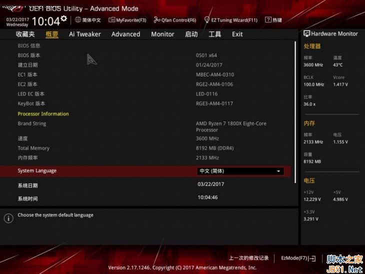 概要界面內則包含了當前的固件版本信息、處理器信息、語言、時間等。